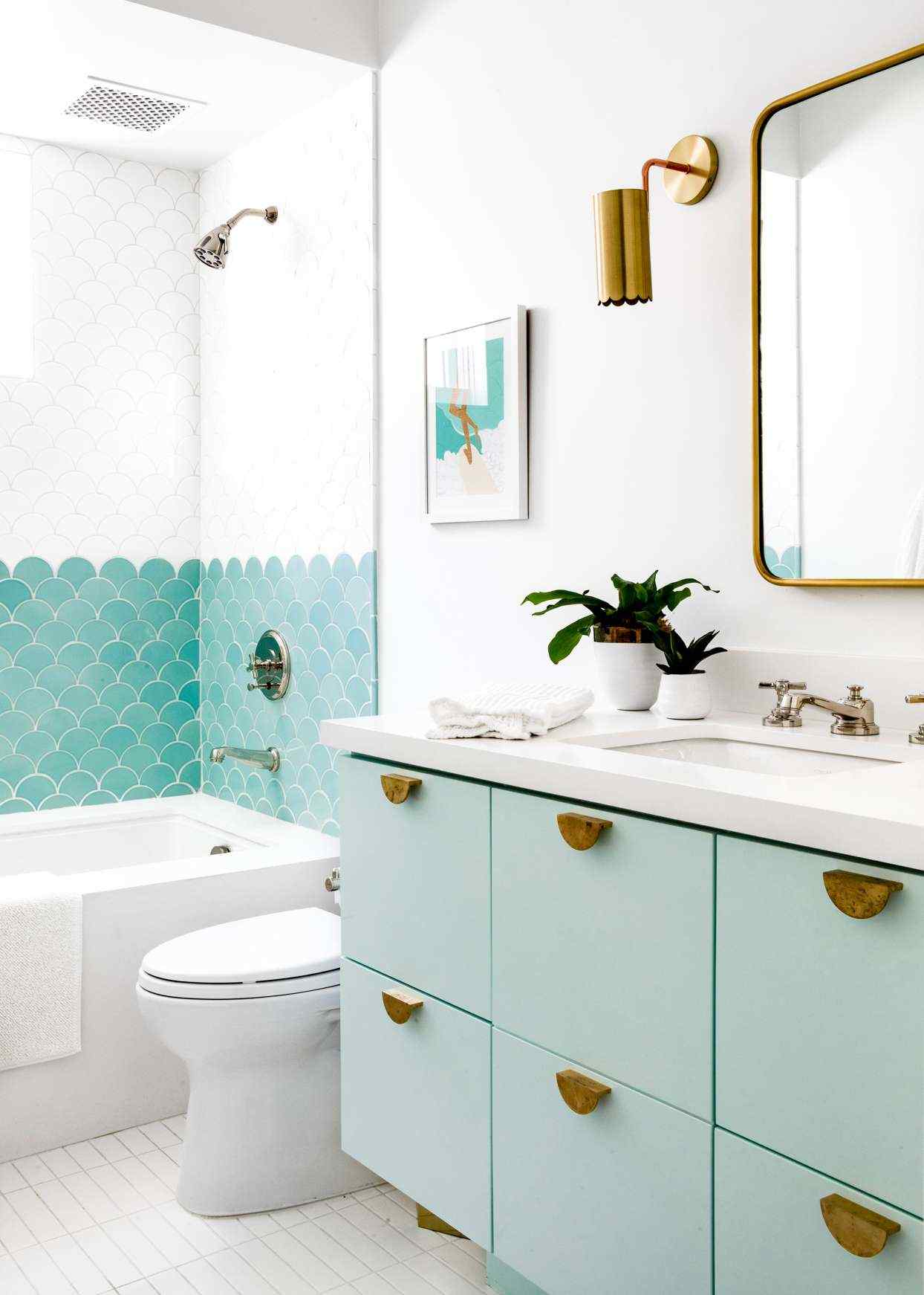 15 Beautiful Bathroom Designs With Blue Tile. From backsplashes to showers to floors, blue tile seamlessly integrates into any bathroom and design style while instantly elevating the space. Get inspiration for baths, toilets, showers, vanities and more.